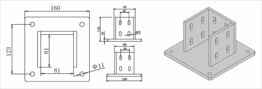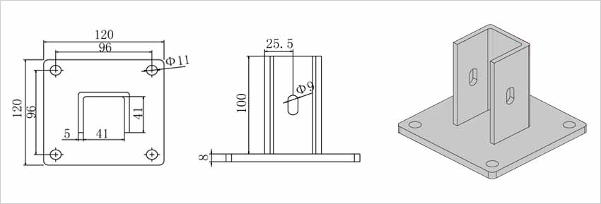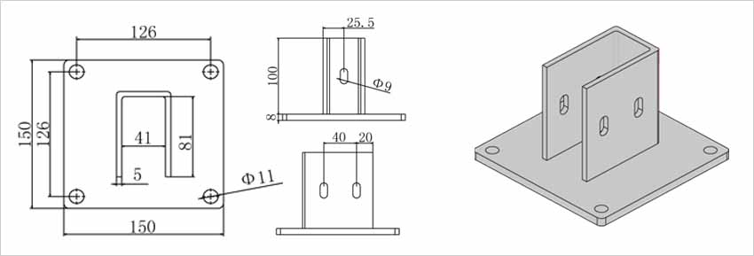 | 鋁型材防護(hù)圍欄安裝底座: | |